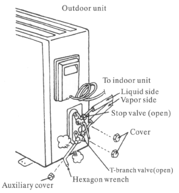 - Open the stop and T-branch valve with a hexagon wrench to make the unit operate.